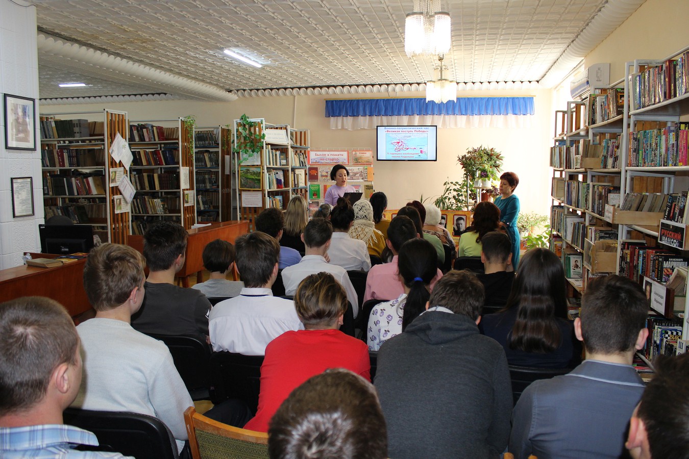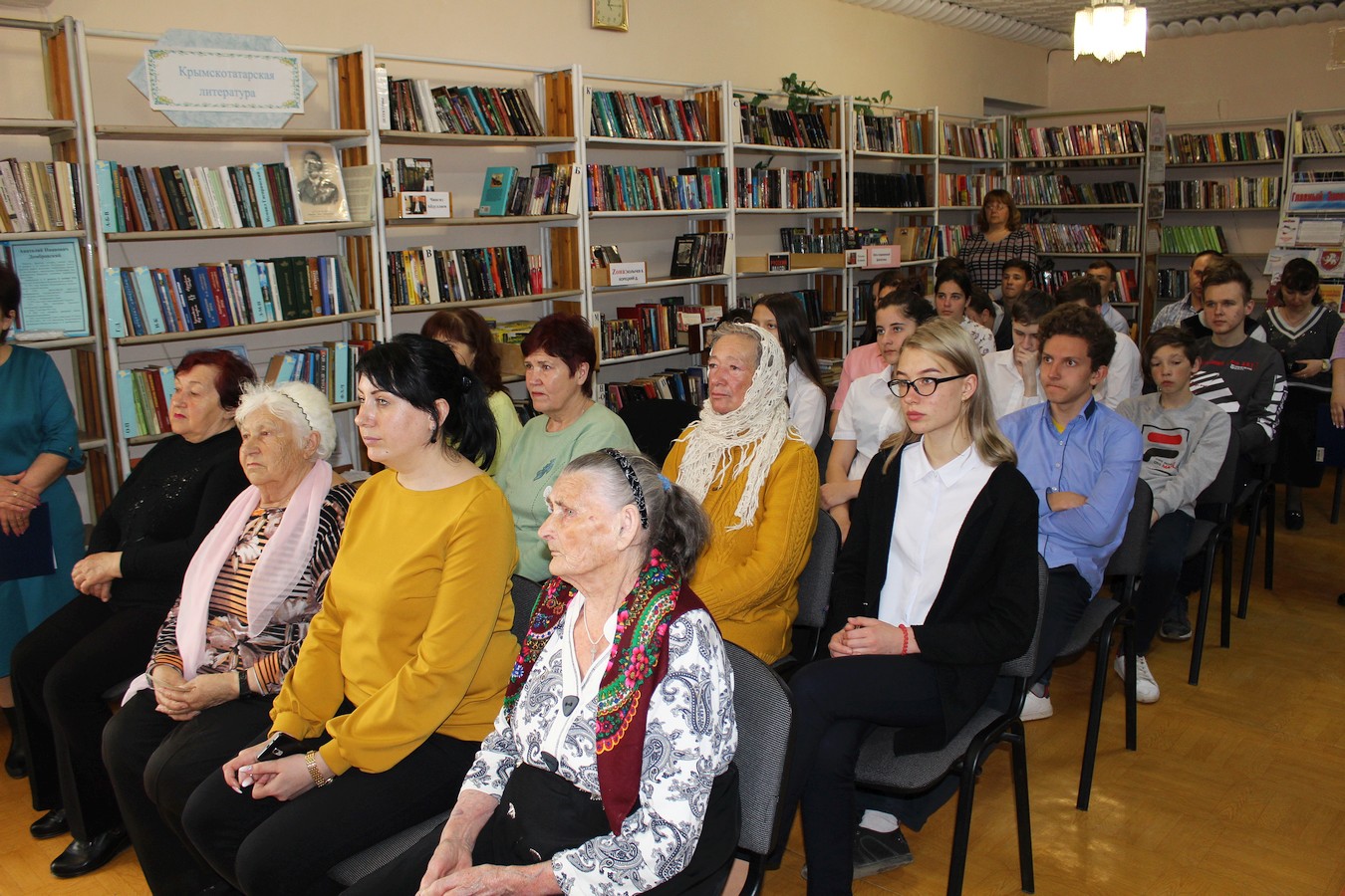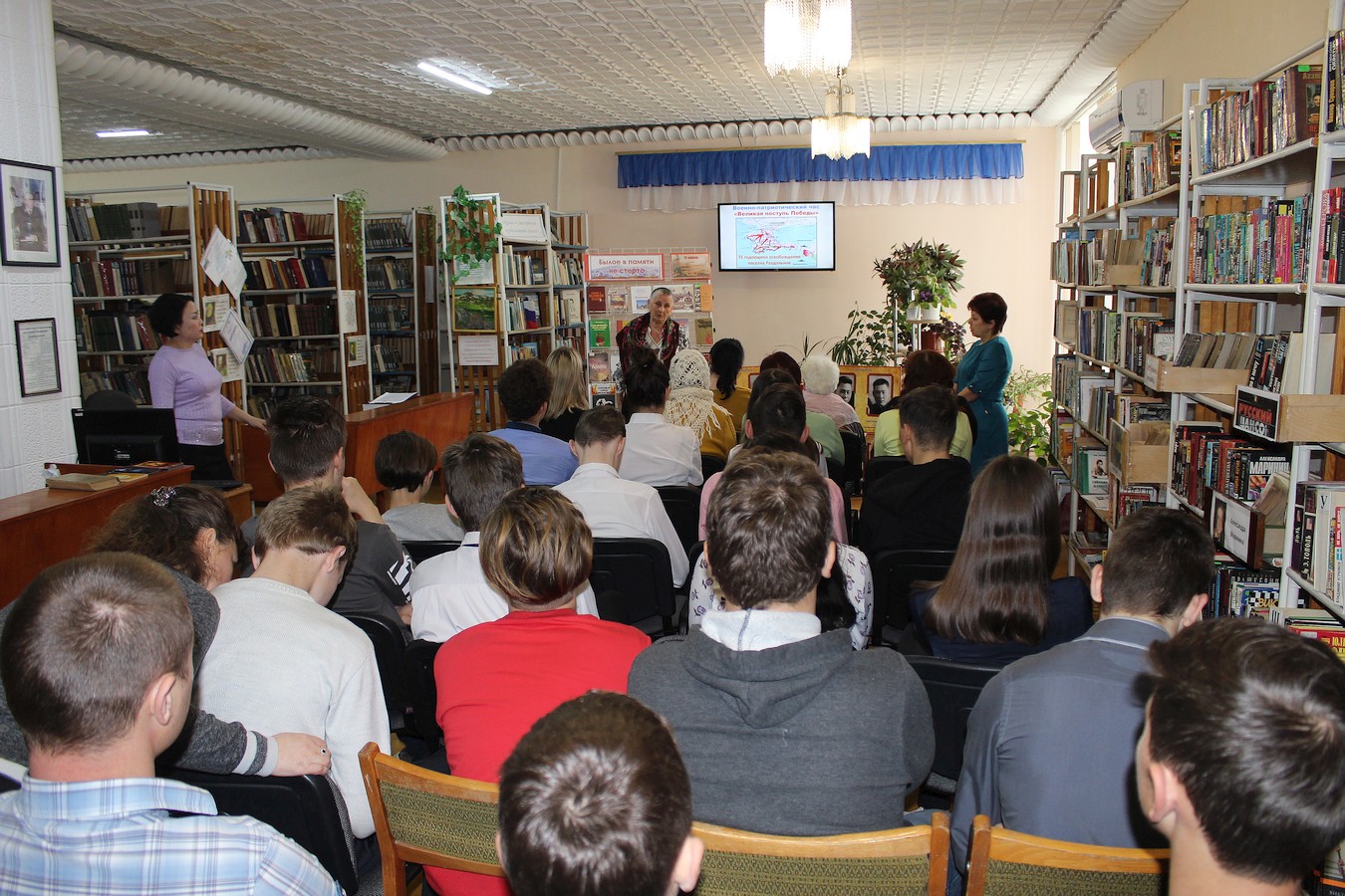 Библиотекари Галина Новикова и Ленара Сейт-Билял представили краткую историческую справку о событиях, которые разворачивались в нашем районе во время Великой Отечественной войны: о действиях подпольщиков в период оккупации, о героических подвигах и трагической судьбе семьи Ким, о наступлении советских войск и освобождении поселка Ак-Шейх в апреле 1944 года.