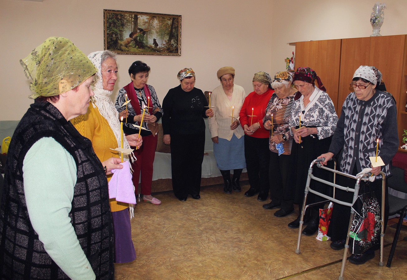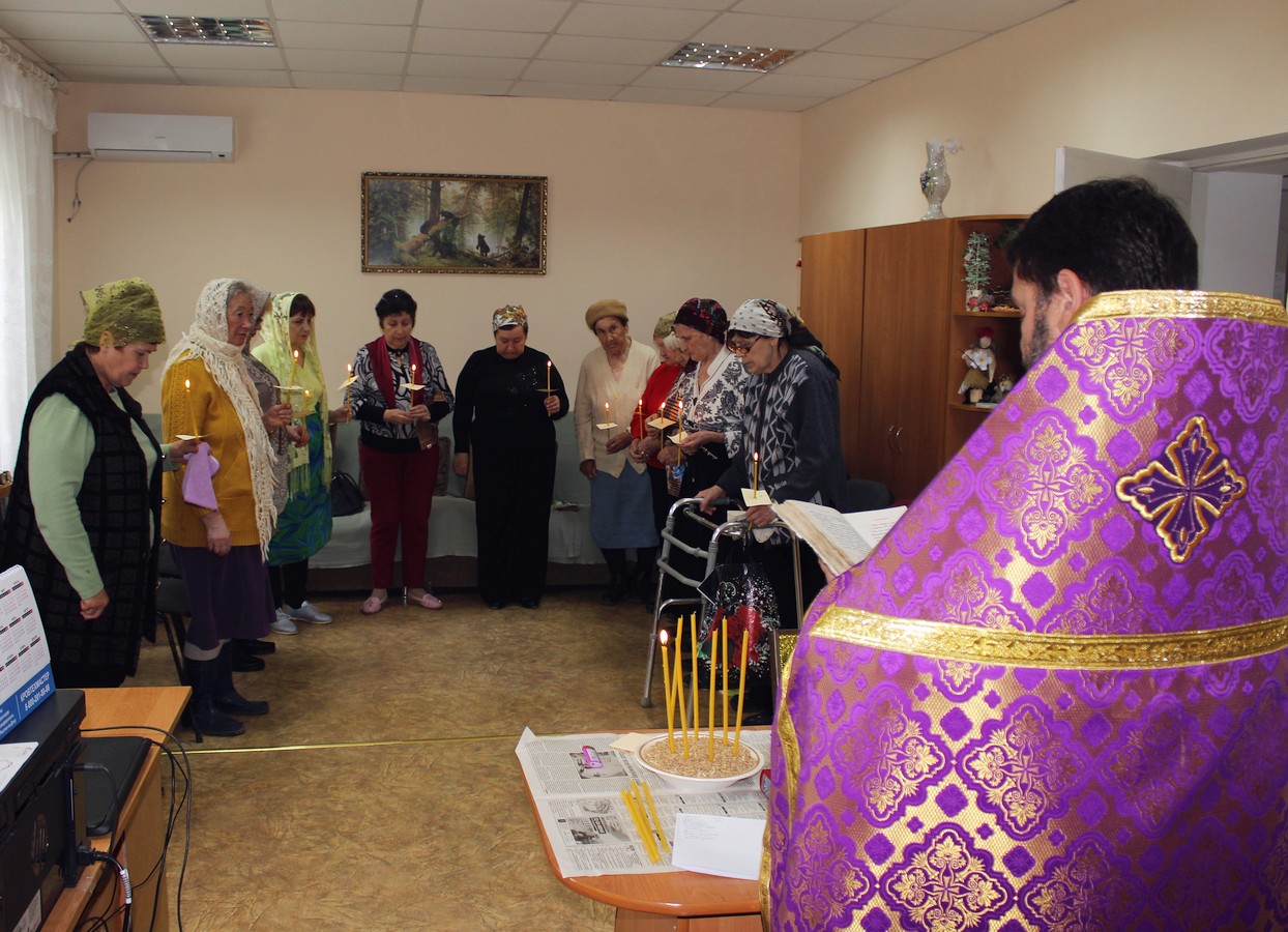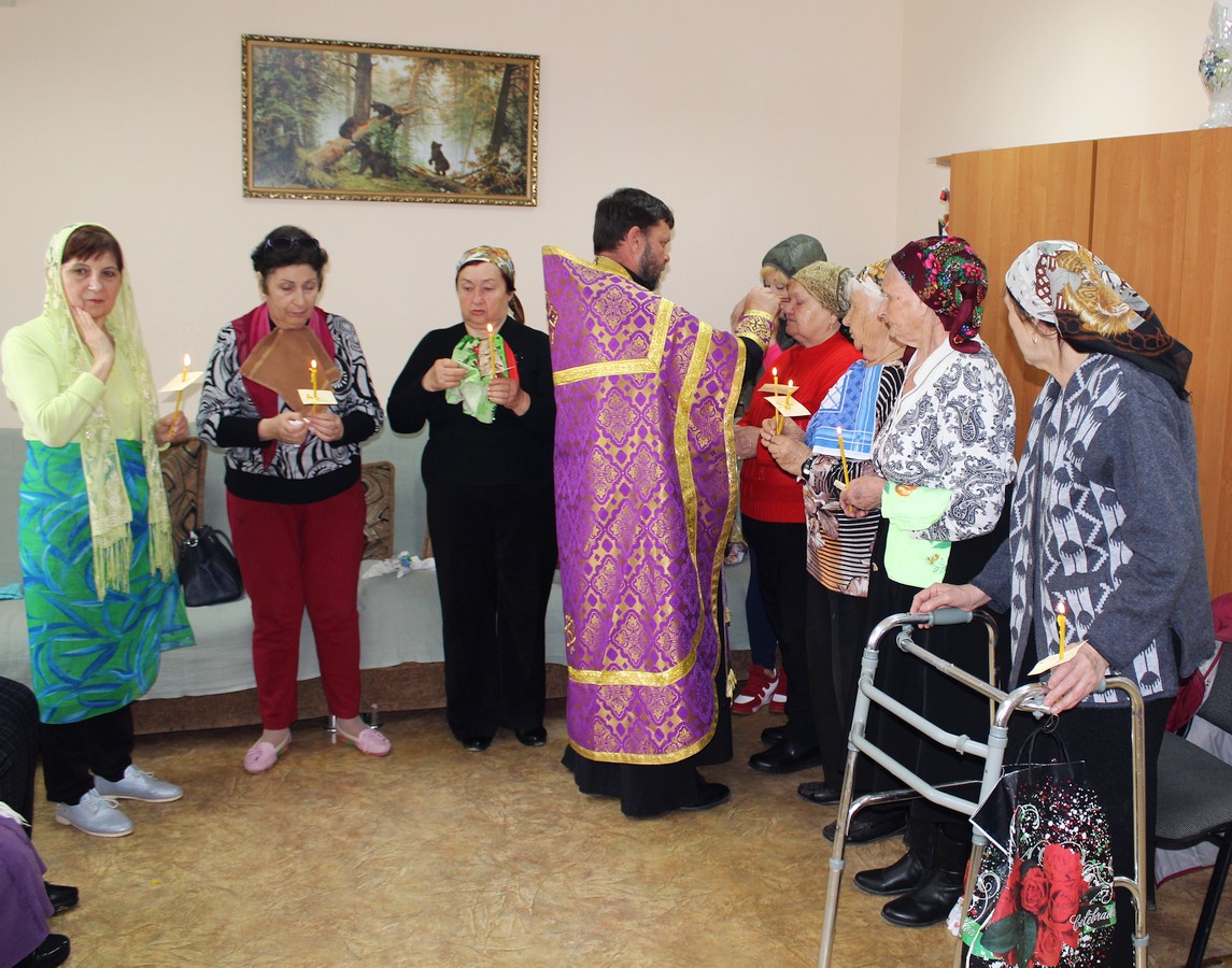 В те дни, когда Центр социального обслуживания посещает отец Олег, в отделении дневного пребывания всегда бывает многолюдно. В этот раз священник совершил Таинство Соборования, по-другому именуемое Елеосвящение.