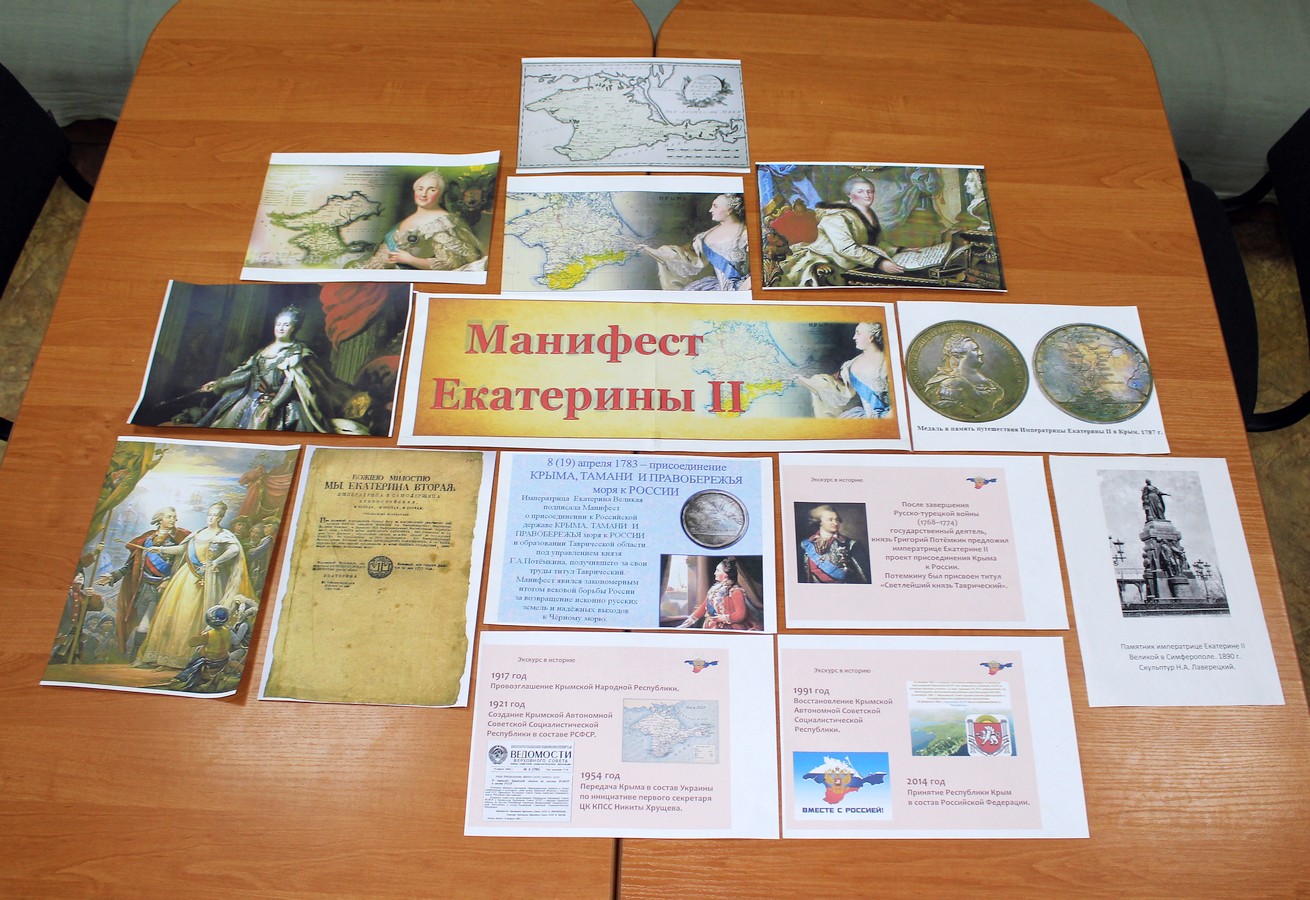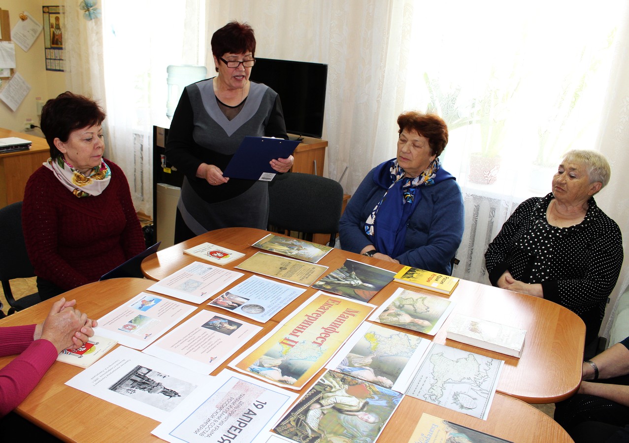 17 апреля 2019 года, в рамках проекта «Старшее поколение», в отделении дневного пребывания граждан пожилого возраста и инвалидов ГБУ РК «ЦСО Раздольненского района» прошел час истории, посвященный дню издания «Манифеста великой Екатерины II о присоединении Крымского полуострова, острова Тамани и всея Кубанской стороны к России», изданного 8 апреля 1783 года.