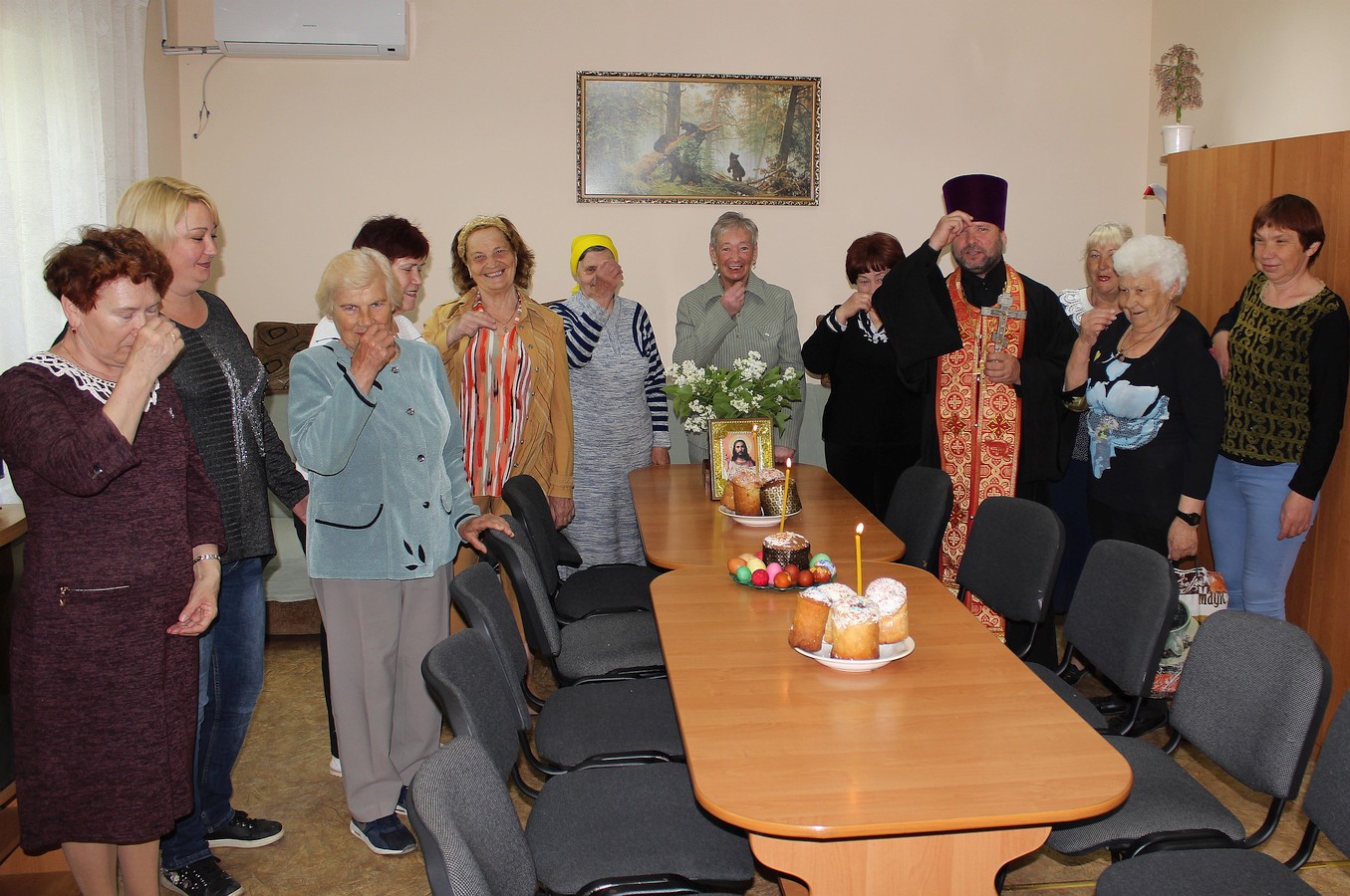 30 апреля 2019 года в отделении дневного пребывания граждан пожилого возраста и инвалидов ГБУ РК «ЦСО Раздольненского района» состоялась встреча получателей социальных услуг и сотрудников Центра со священником церкви Св. Тихона Московского иереем Олегом Колбановым. Эта встреча была приурочена к прошедшему празднику Пасхи.