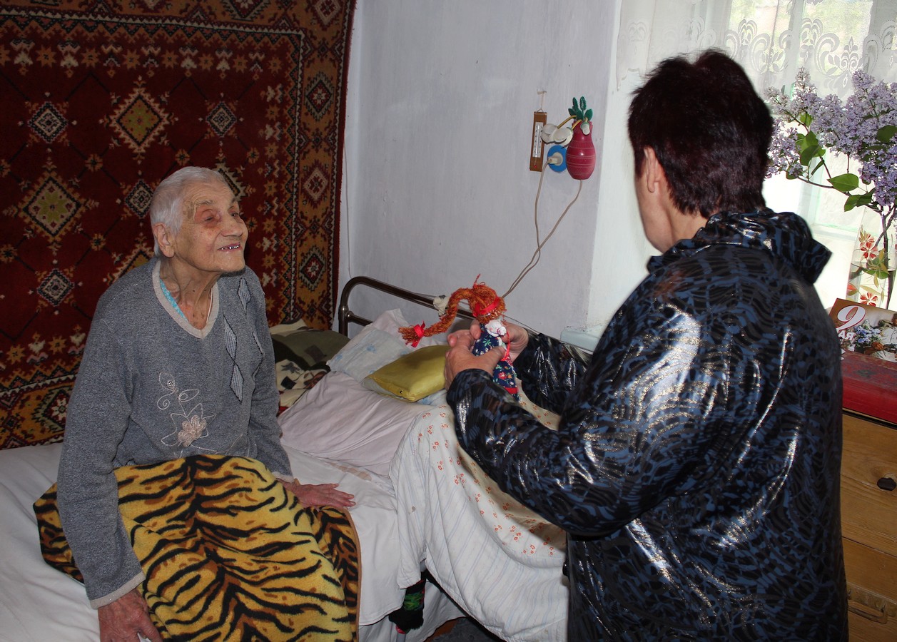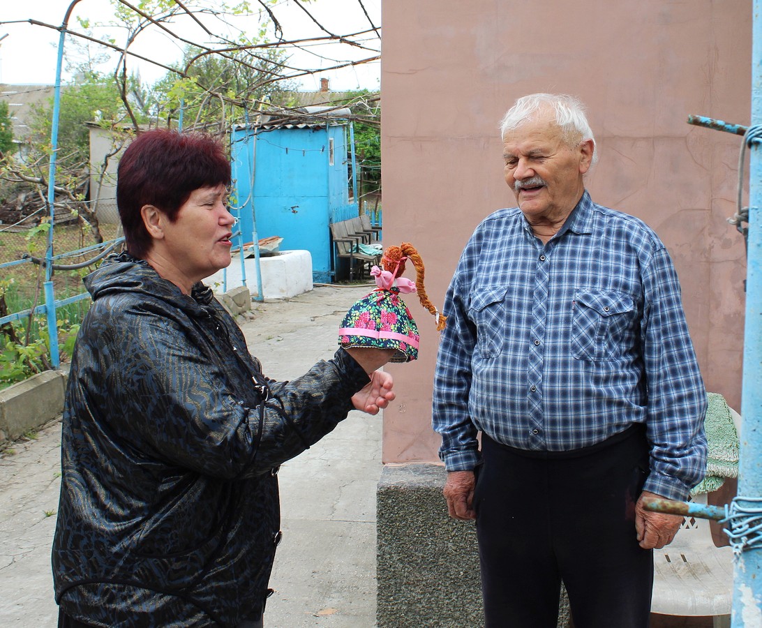 Пожилые люди с радостью встречали гостей на пороге своего дома. Серебряные волонтеры поздравляли ветеранов с наступающим Днем Победы и вручали скромные подарки — обереги, изготовленные умелыми руками мастериц в кружке рукоделия «Сундучок», который работает в отделении дневного пребывания ГБУ РК «ЦСО Раздольненского района. Куклы-обереги — это часть народной культуры, возникшая еще во времена Древней Руси и сохранившаяся до наших дней.