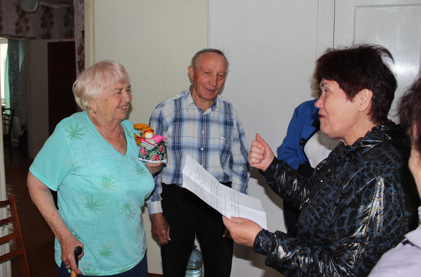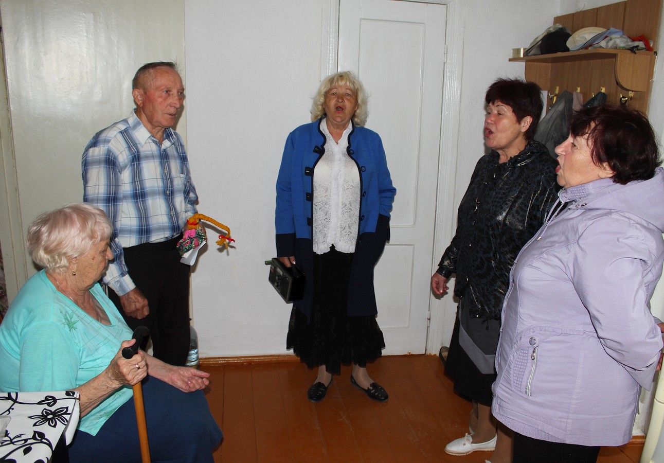 7 мая 2019 года, в рамках проекта «Старшее поколение», серебряные волонтеры ГБУ РК «ЦСО Раздольненского района» — солисты вокального ансамбля «Беспокойные сердца» Вера Туз, Нина Биссикинова и культорганизатор отделения дневного пребывания Раиса Галимская посетили по месту проживания ветеранов Великой Отечественной Войны — тружеников тыла, которые являются получателями социальных услуг на дому.