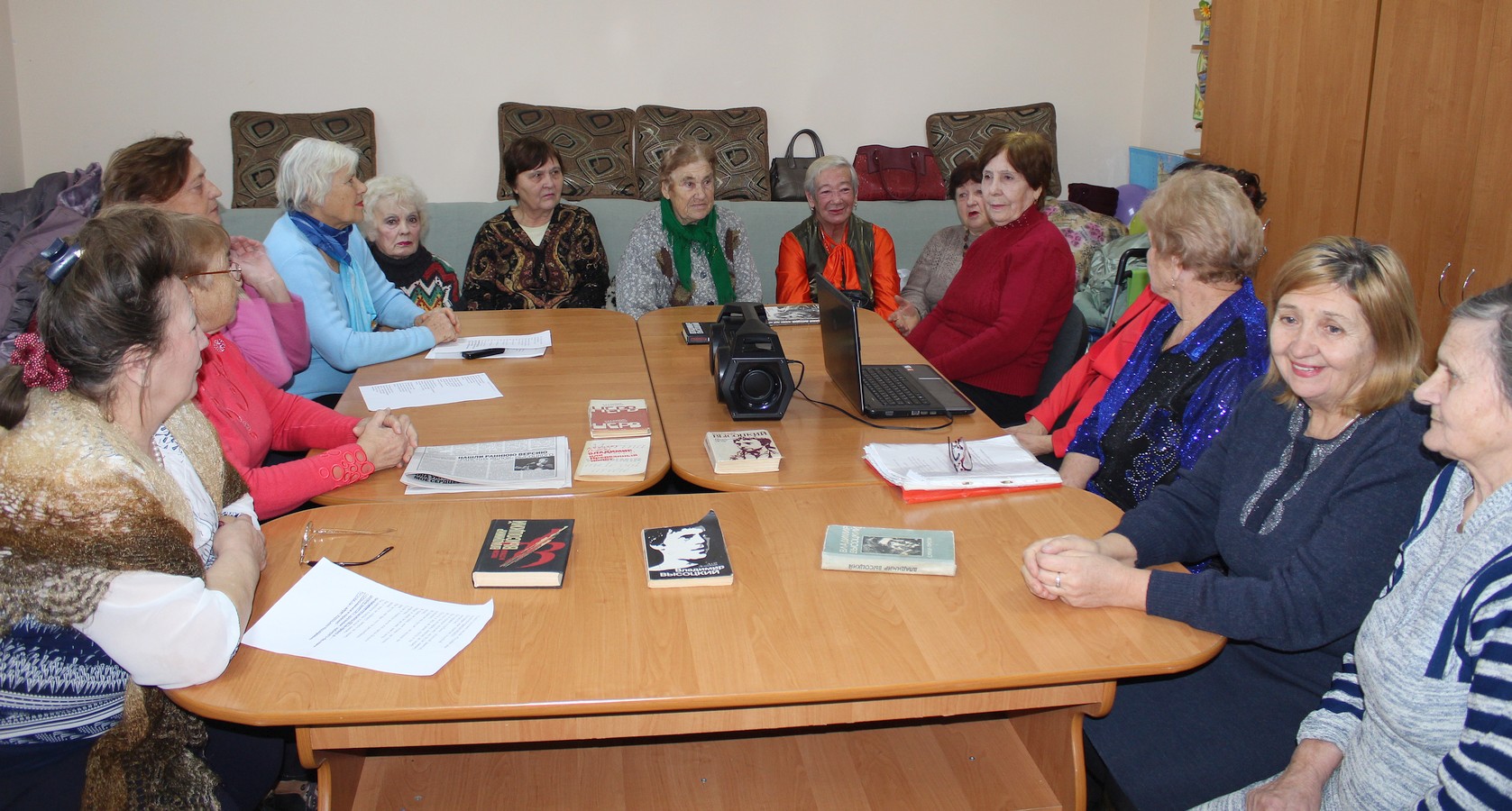 Культорганизатор отделения дневного пребывания Рита Озерова напомнила присутствующим краткую биографию поэта, рассказала о его непростой судьбе, сложном творческом пути и трагической смерти.