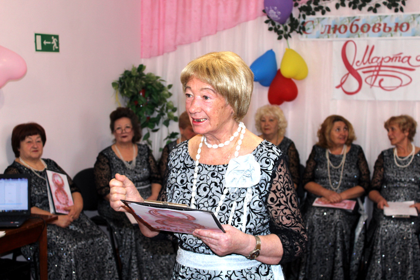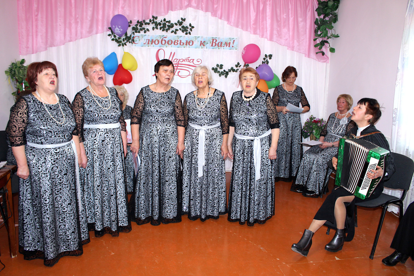 Продолжили концерт серебряные волонтеры — солисты и участники вокального ансамбля «Беспокойные сердца». В их исполнении звучали хорошо известные и горячо всеми любимые песни: «Восьмое марта», «Я деревенская», «Подари мне платок», «Яблоневый вечер» и многие другие, а также праздничные стихотворения и забавные юморески. Апофеозом концерта стало исполнение ансамблем попурри из легендарных песен разных времен, которые подпевал весь зрительный зал.