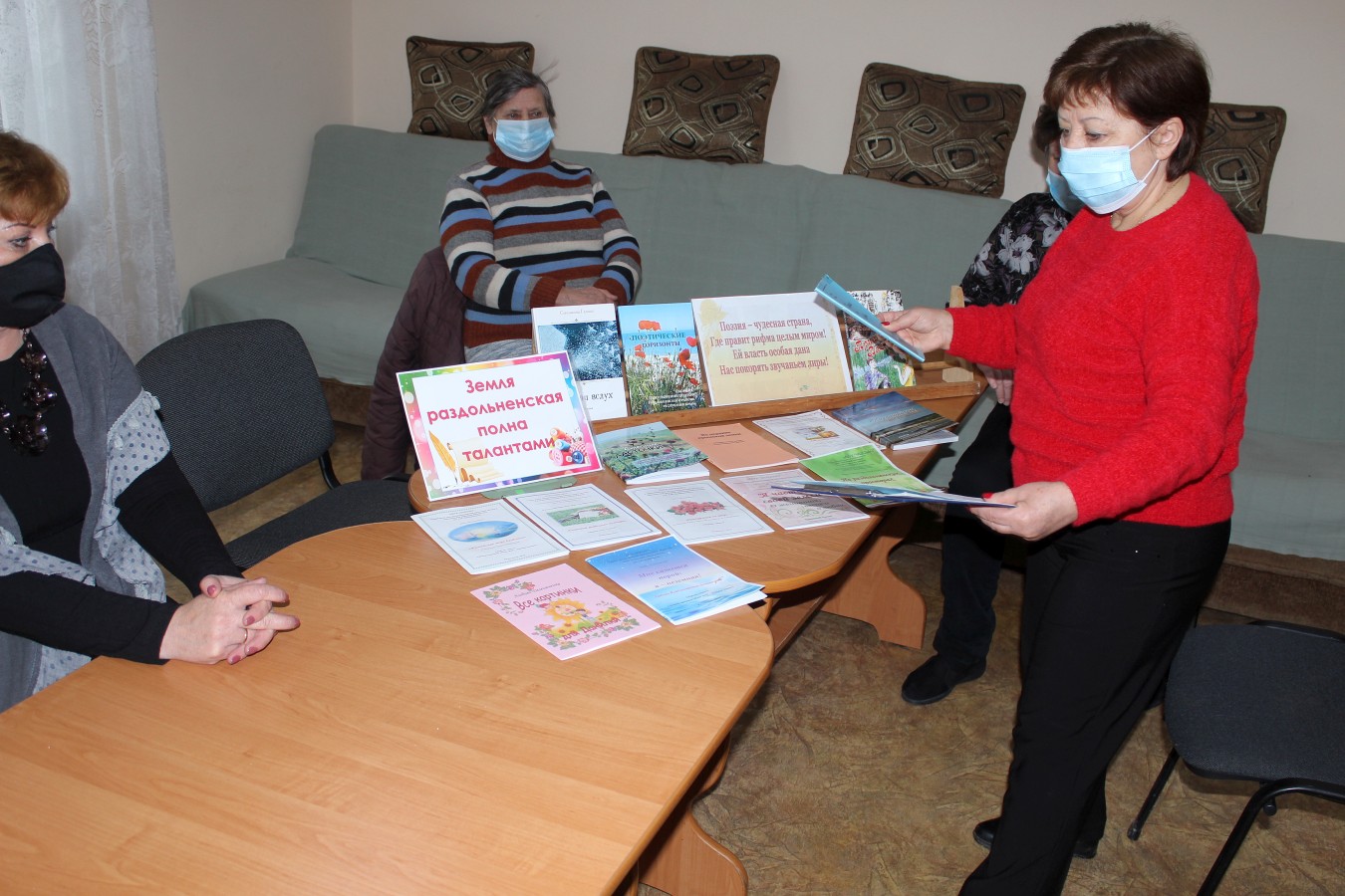 Получателям социальных услуг была показана выставка книг, на которой были представлены сборники поэтических произведений раздольненских поэтов: Любови Демьяненко, Ольги Чирковой, Юлии Цисарь.