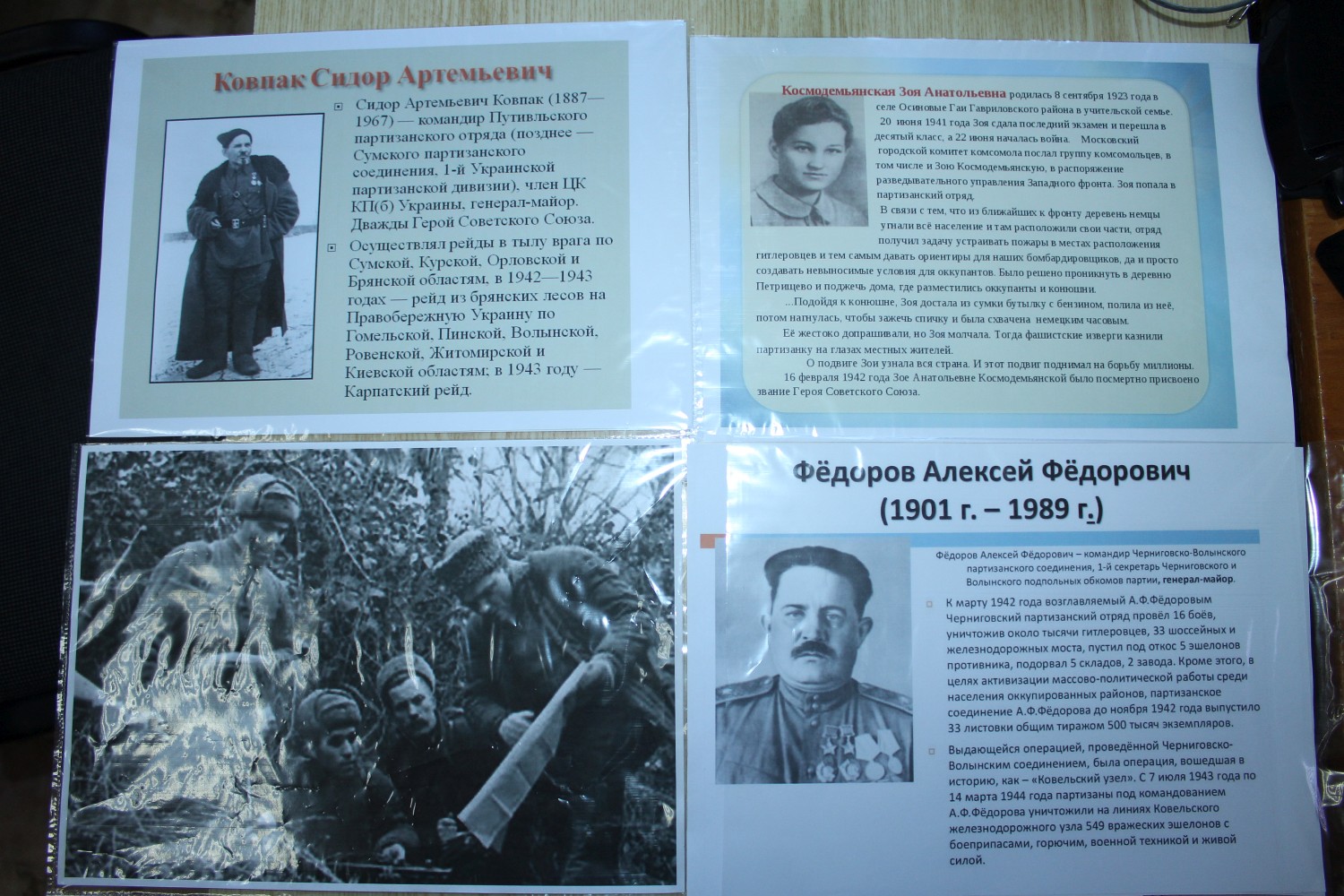 В ходе мероприятия библиотекарь рассказала о подвигах партизан и подпольщиков, о трудностях, которые им пришлось преодолеть ради победы и свободы, рассказала о героизме и мужестве советских людей, не щадивших себя в борьбе с врагами, вспомнили имена тех, кто в период оккупации вел подпольную деятельность на территории нынешнего Раздольненского района.