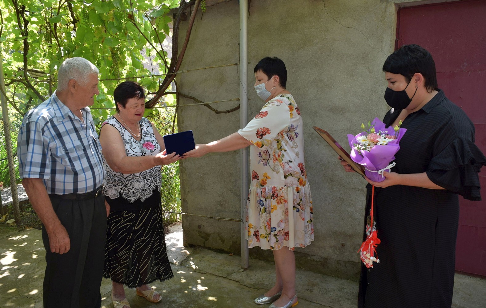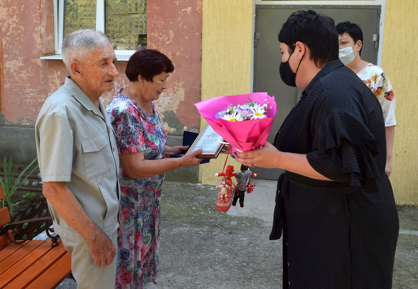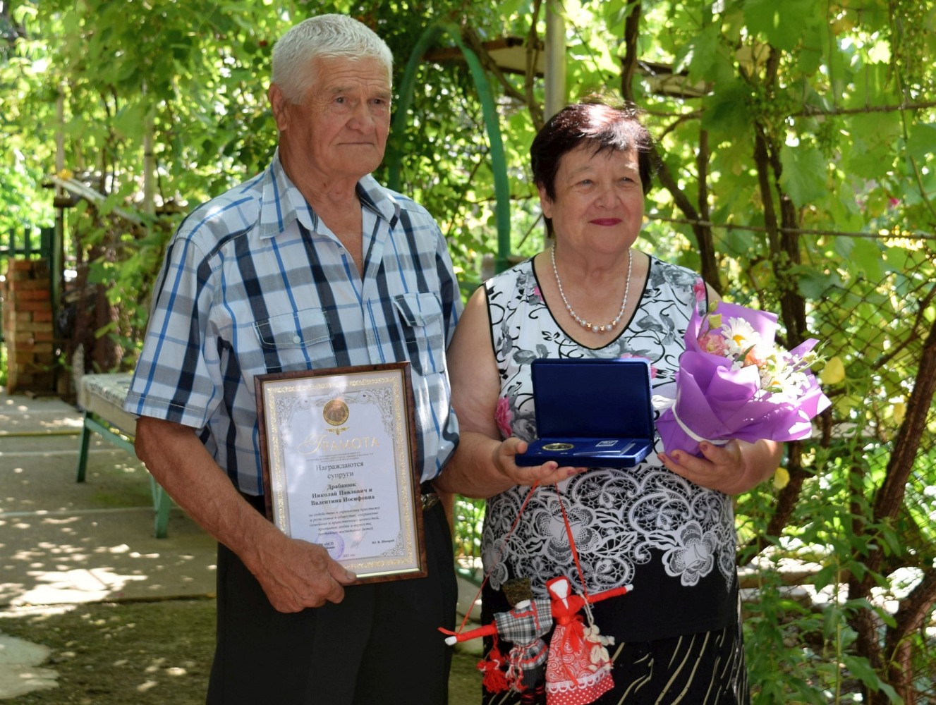 Поздравления принимали супруги Каблуковы и Драбанюк. Владимир Борисович и Нина Гавриловна Каблуковы любви и согласии живут уже 58 лет, у них двое детей, четверо внуков и трое правнуков. Супруги Драбанюк Николай Павлович и Валентина Иосифовна вырастили двоих детей и сейчас имеют двоих внуков. На данный момент в любви и согласии супруги Драбанюк прожили 54 года.