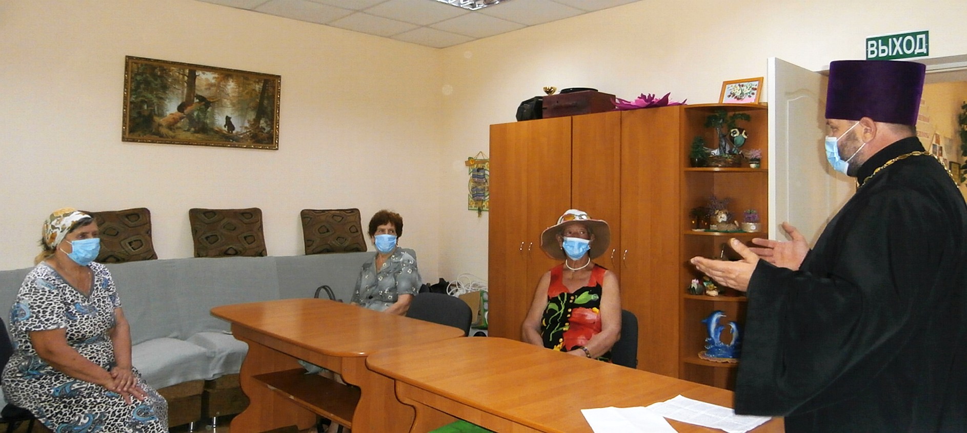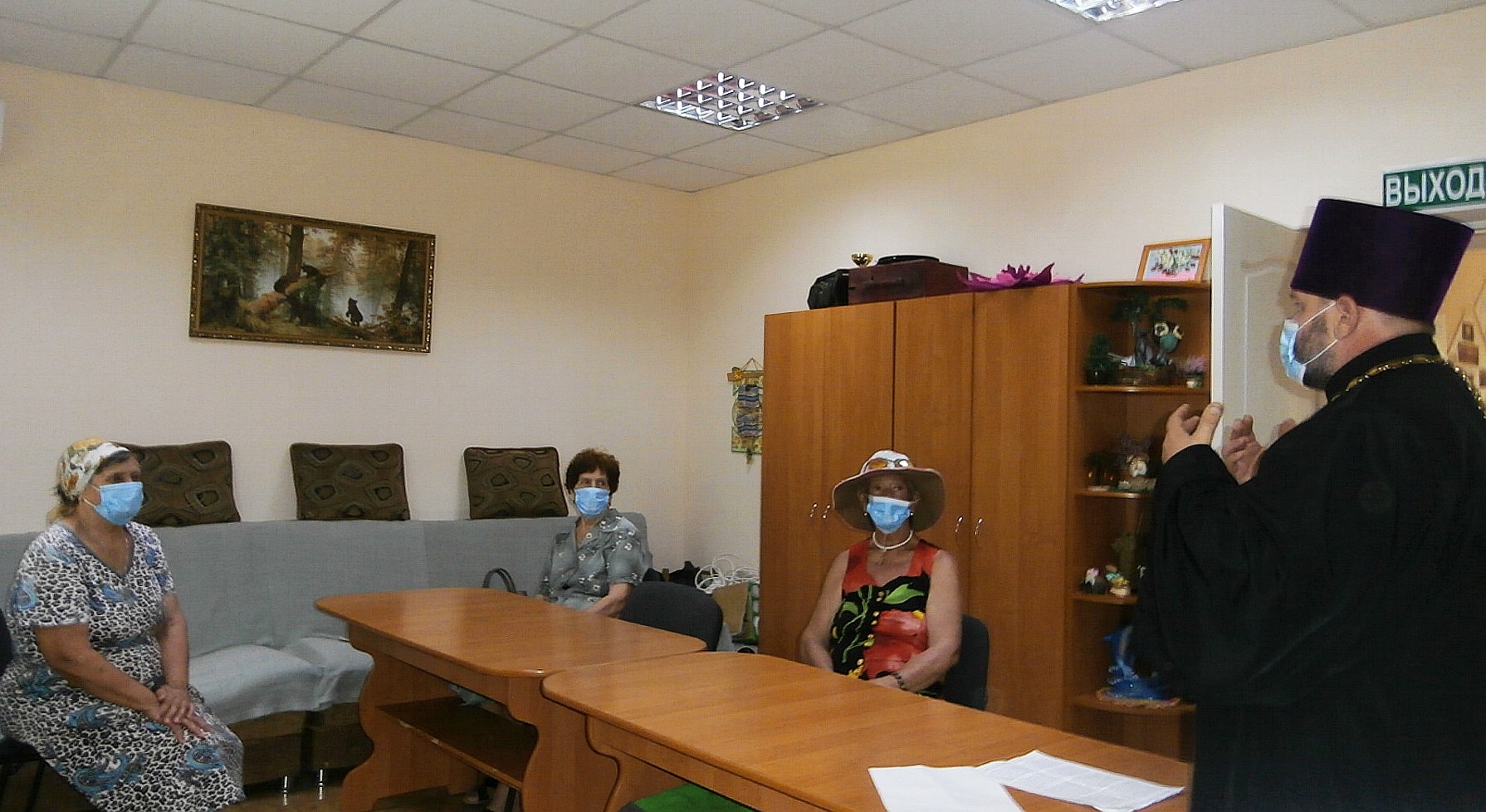 12 августа 2021 года в отделении дневного пребывания ГБУ РК «ЦСО Раздольненского района» состоялись очередные встречи получателей социальных услуг со священником церкви Св. Тихона Московского иереем Олегом Колбановым.