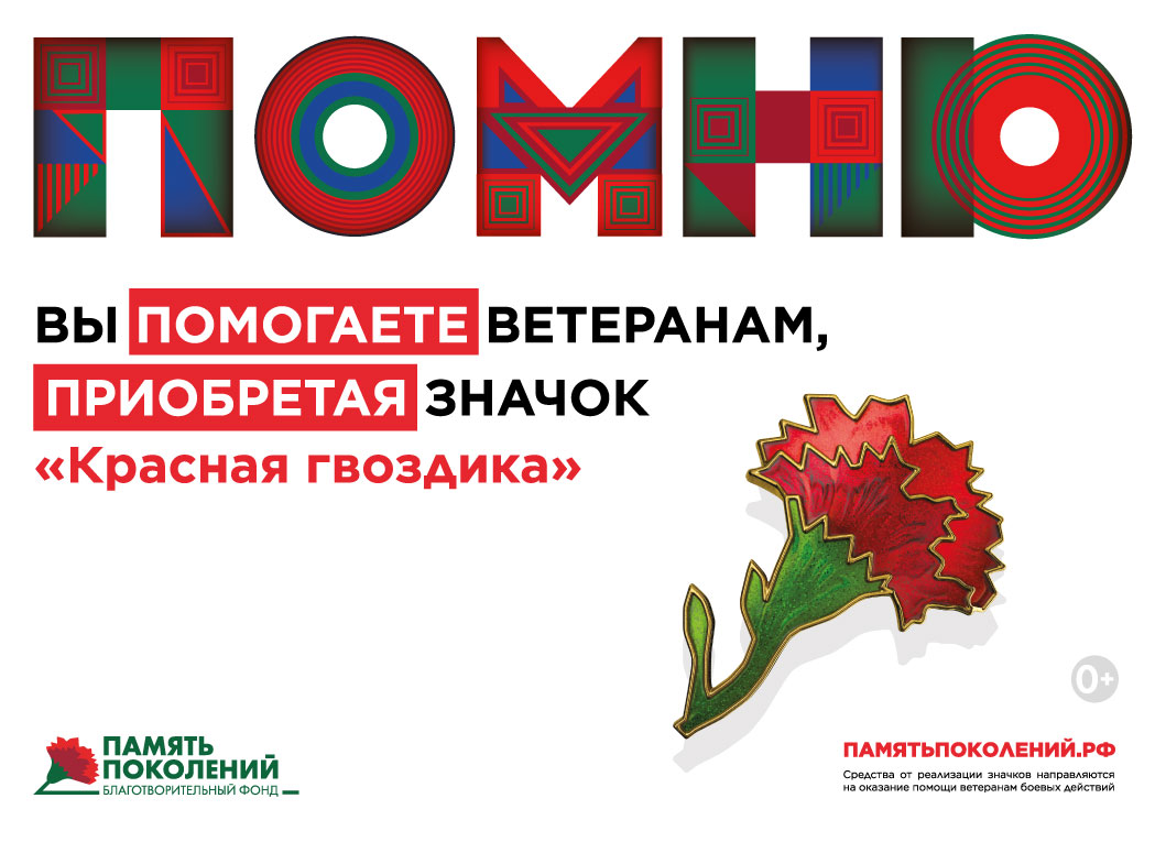 В этом году масштабная всероссийская акция помощи ветеранам благотворительного фонда «ПАМЯТЬ ПОКОЛЕНИЙ» пройдет с 21 апреля по 22 июня – для того, чтобы поддержать ветеранов необходимо получить значок «Красная гвоздика». Распространять значки будут «Волонтеры Победы» и участники федеральной программы «Молоды душой» - «серебряные» волонтеры. Также приобрести значок можно будет в сетевых магазинах и на популярных онлайн-маркетплейсах. Все собранные средства идут на медицинскую помощь ветеранам России. В общей сложности акция охватит 78 регионов нашей страны.