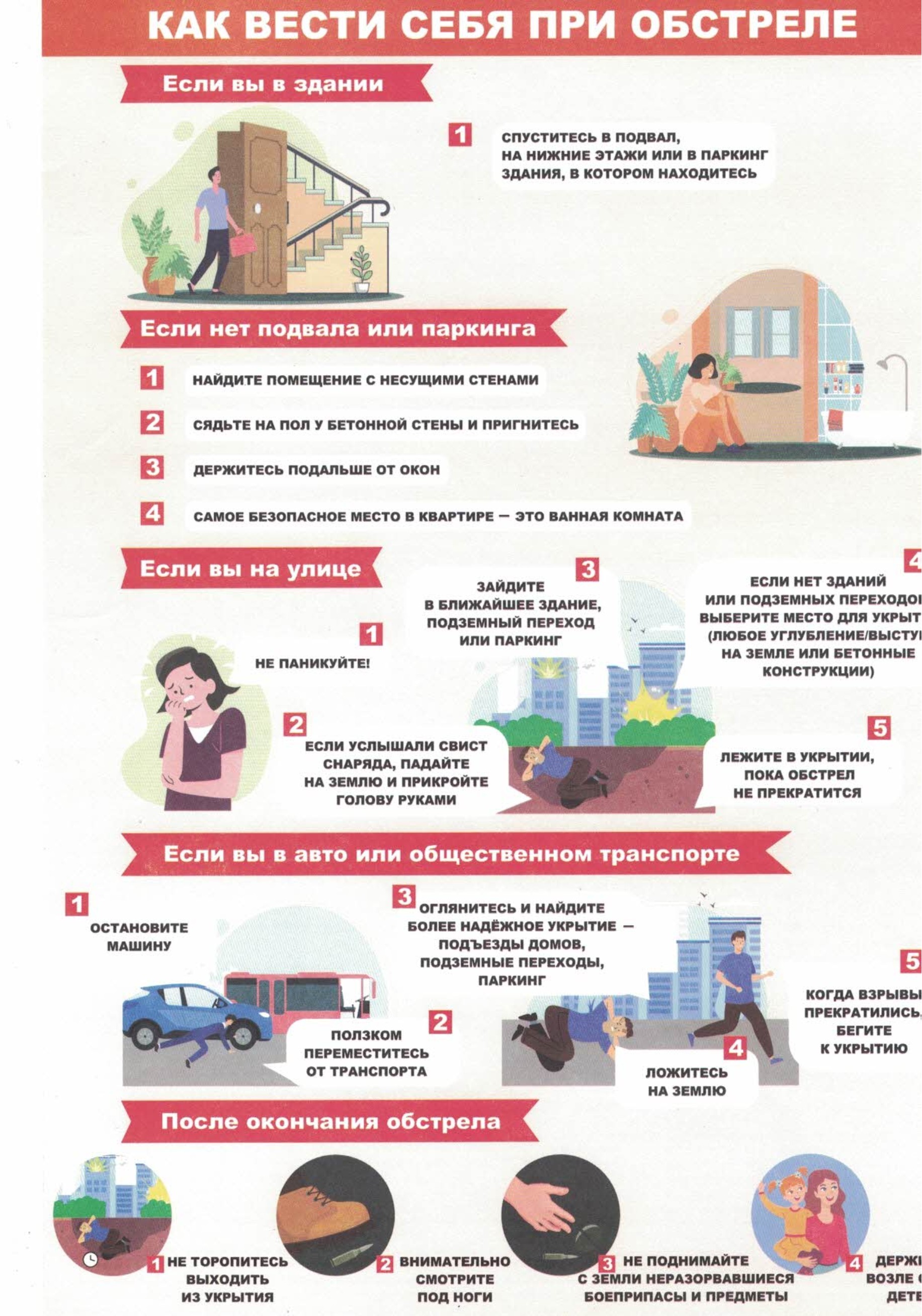 ПОМНИТЕ, в первую очередь необходимо взять документы, вещи по сезону, деньги, запас еды и питьевой воды на сутки. Отключите газ, электроэнергию, закройте окна и двери. Проинформируйте соседей – возможно они не слышали передаваемую информацию. Укрыться в закрепленном (ближайшем) защитном сооружении гражданской обороны или в заглубленном помещении подземного пространства.