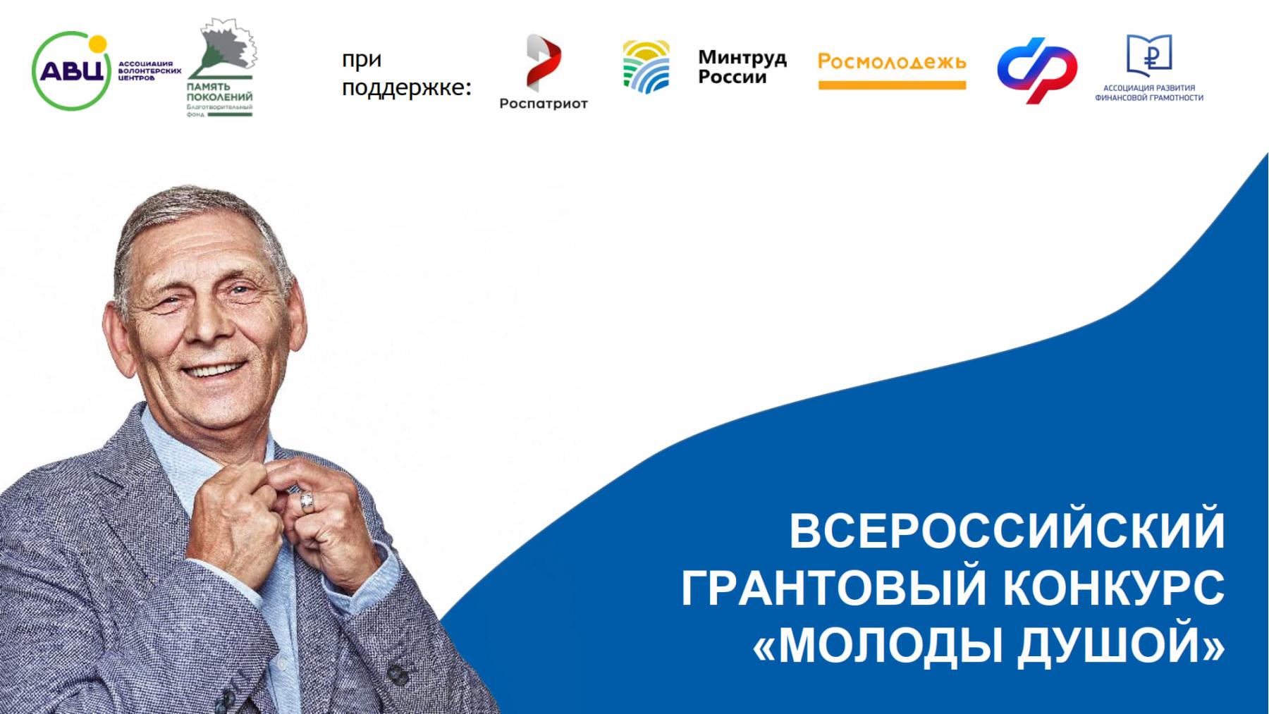С 06 июня 2023 года Ассоциация волонтерских центров проводит Всероссийский грантовый конкурс «Молоды душой» . Заявочная кампания продлится до 24 июля 2023 года.