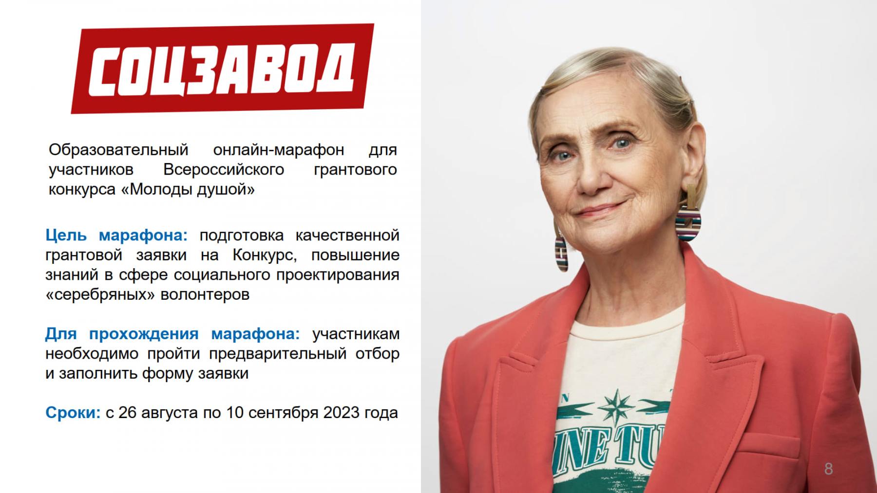 Конкурс направлен на поддержку социальных проектов граждан старшего возраста (от 55 лет) и открытие Добро . Центров, работающих с пожилыми людьми, в регионах России.