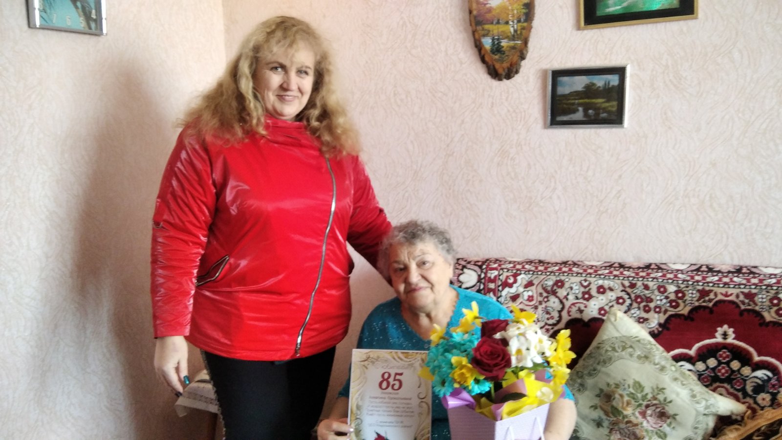 В этот солнечный день сотрудники ГБУ РК «ЦСО Раздольненского района» с участием серебряных волонтеров поздравили Алевтина Прокопьевну на дому.