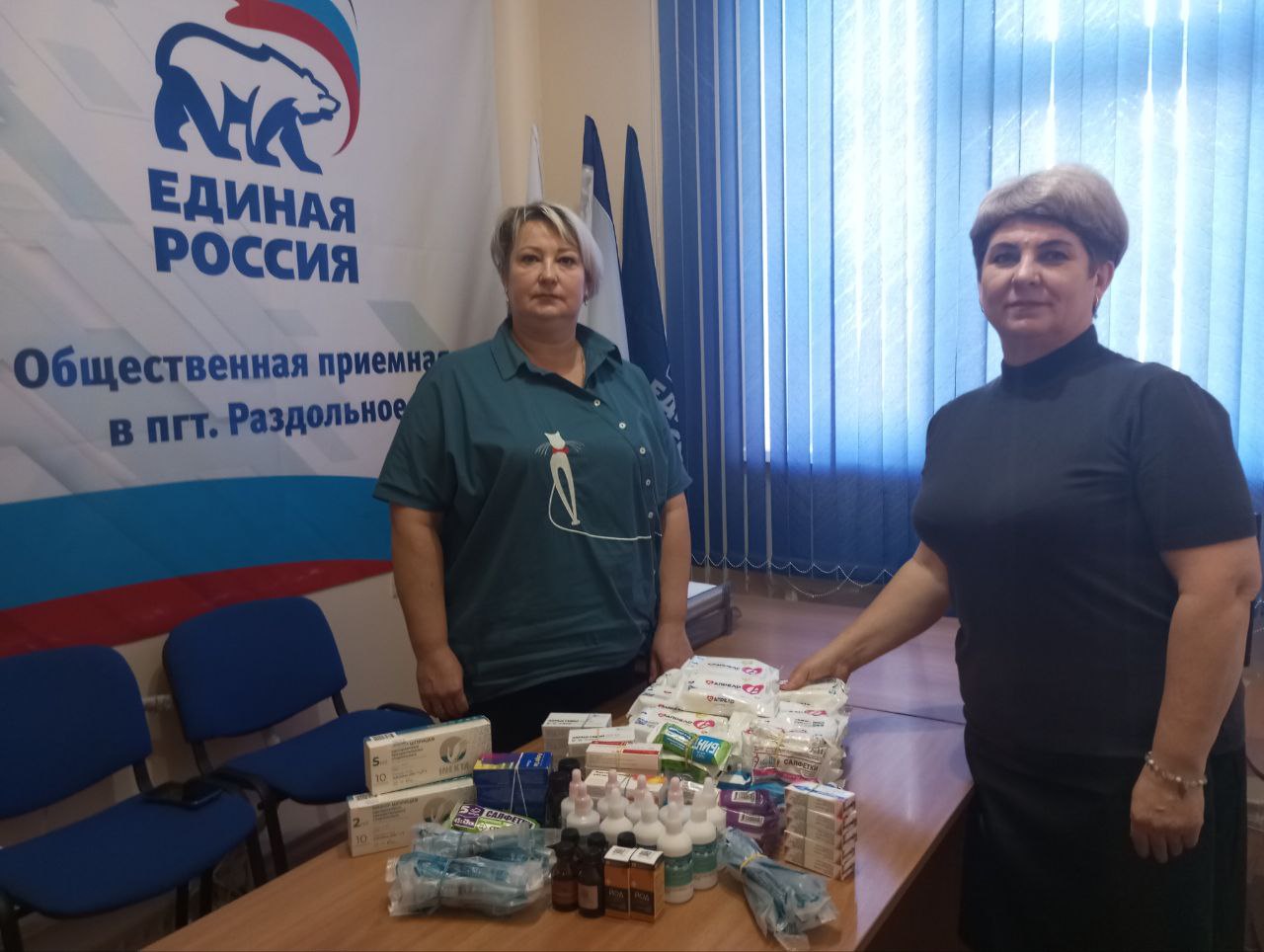 Медикаменты, средства личной гигиены – в очередной раз, собрали сотрудники ГБУ РК «ЦСО Раздольненского района» и передали в Раздольненское местное отделение партии «Единая Россия», для отправки участникам СВО.