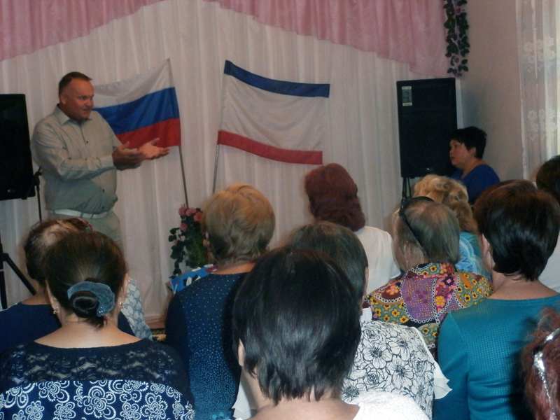 В ГБУ РК "ЦСО Раздольненского района" состоялась встреча получателей социальных услуг и работников центра социального обслуживания с представителем исполнительной власти Андреем Захаровым. В ходе встречи первый заместитель главы Администрации ответил на все вопросы о направлении в развитии нашего района, о планах на будущее, о реализации проектов. Также на встрече присутствовали начальник отдела Пенсионного Фонда РФ Раздольненского района (без образования юридического лица) Надежда Окунская и заместитель начальника Пенсионного Фонда РФ Раздольненского района Наталья Журавель, которые представили присутствующим волонтера Галину Погорелко. В ходе беседы с представителями Пенсионного Фонда РФ получатели социальных услуг были ознакомлены о единовременной компенсационной выплате, ответили на вопросы пенсионеров.