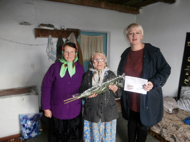 С этой знаменательной датой ее поздравила заместитель директора ГБУ РК "ЦСО Раздольненского района" Нина Гращенко, с наилучшими пожеланиями здоровья благополучия и вручили персональное поздравление от Президента РФ Владимира Владимировича Путина.