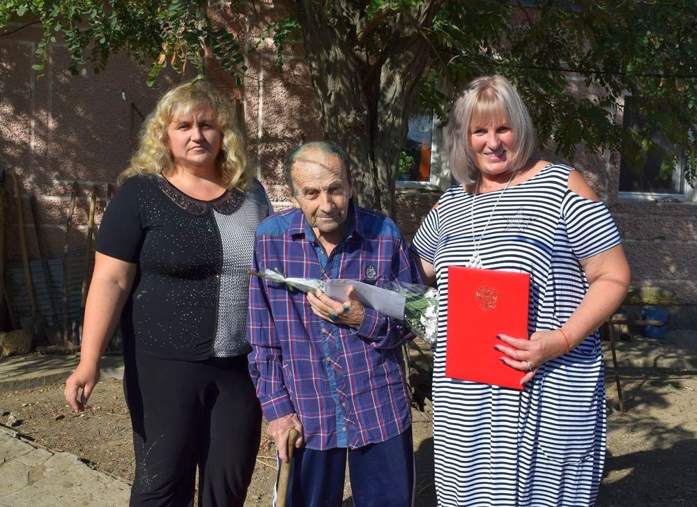 С этой знаменательной датой его поздравили заместитель главы администрации Раздольненского района РК Ольга Ломоносова, заведующий отделением социального обслуживания на дому ГБУ РК «ЦСО Раздольненского района» Ольга Перфильева, которые пожелали юбиляру крепкого здоровья и долгих лет жизни и вручили персональное поздравление от Президента РФ Владимира Владимировича Путина.
