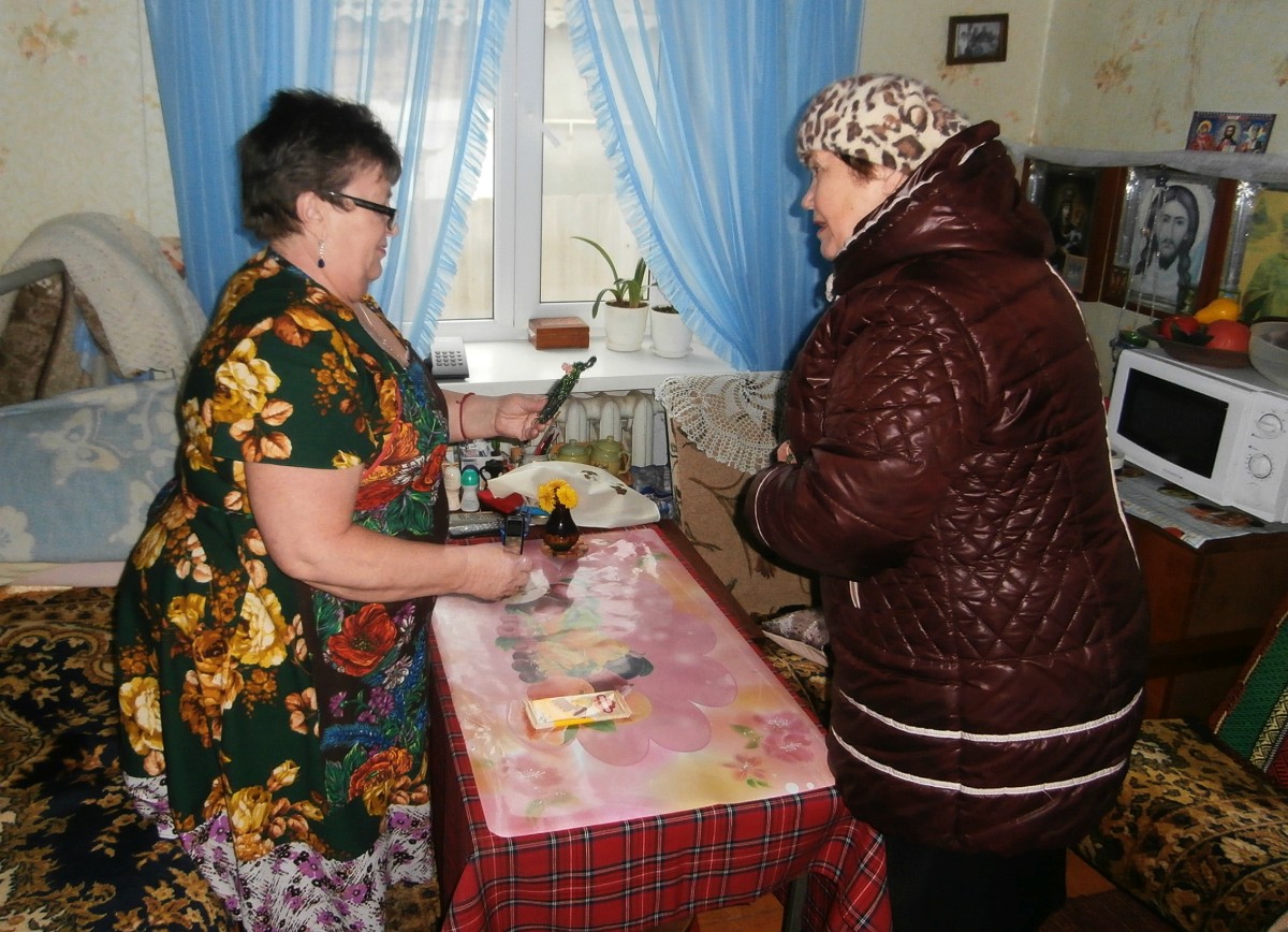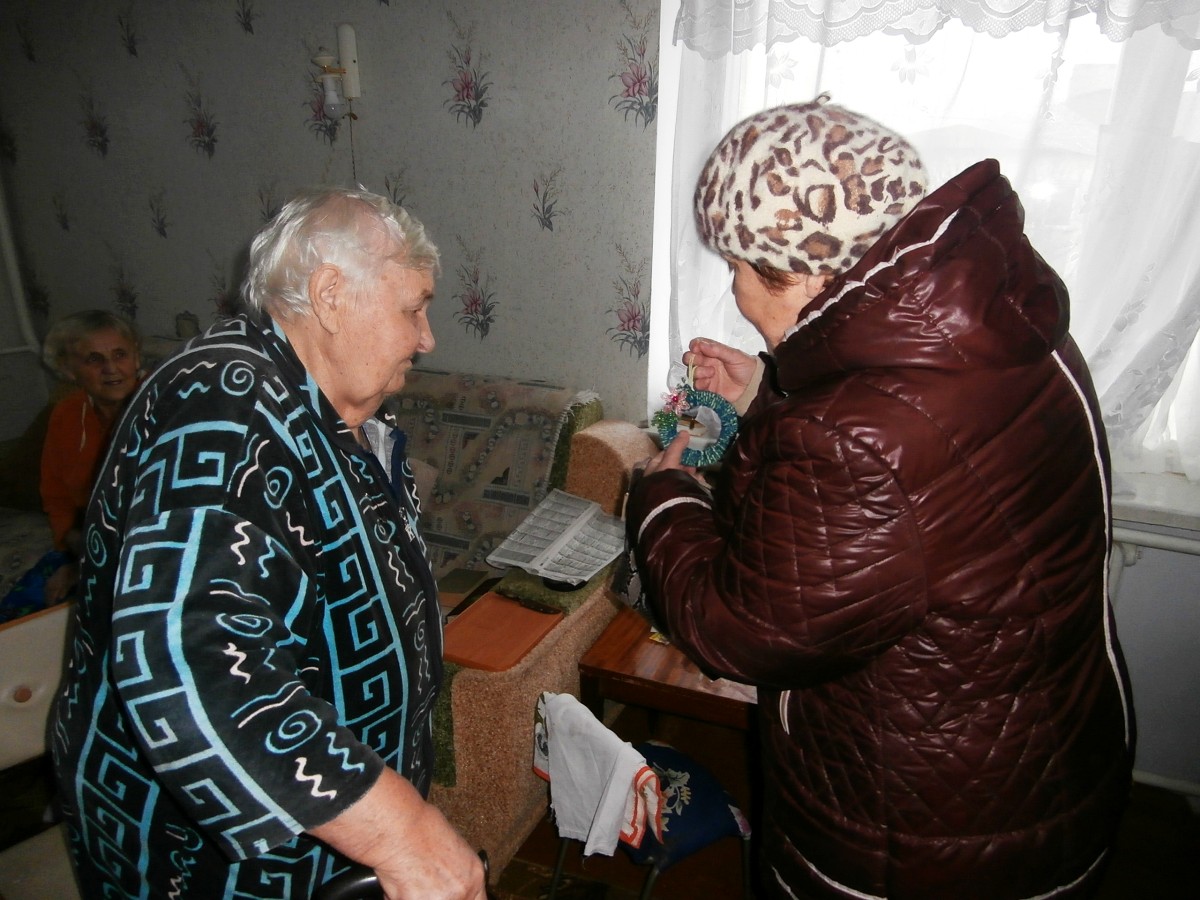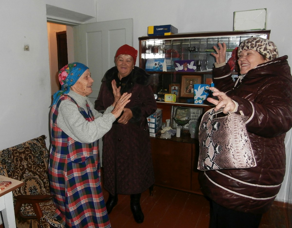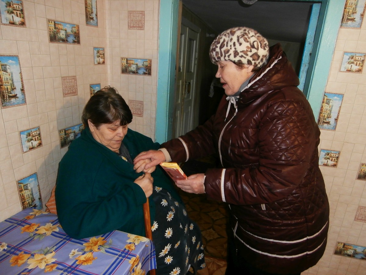 В каждом доме, куда заходили Раиса Сергеевна и Нина Антоновна, они были желанными гостями, их встречали с радостью и улыбками. В этот день звучали только хорошие, добрые слова, душевные пожелания счастья и долголетия. Раиса Сергеевна вручала пожилым людям подарки — обереги, сделанные заботливыми руками мастериц из кружка рукоделия «Сундучок» в отделении дневного пребывания. Волонтер и солист ансамбля «Беспокойные сердца» Нина Биссикинова исполняла душевные песни, которые никого не оставили равнодушными — одни загрустили, вспоминая времена своей молодости, многие даже всплакнули... Но были и те, кто пустился в пляс, не смотря на свой весьма почтенный возраст! Этим людям сегодняшний день запомнится надолго…