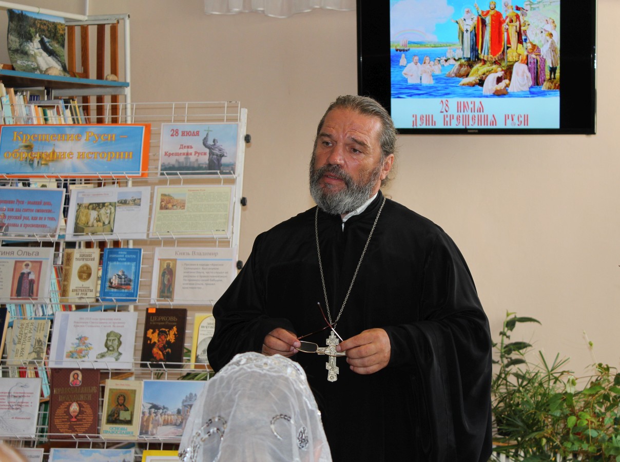 Иерей Андрей Сопельник подробно рассказал о принятии христианства как государственной религии, которое осуществил князь Владимир Святославич в 988 году, о влиянии христианства на жизнь каждой семьи и государства в целом, подробно рассмотрел основные христианские заповеди, которые стали неотъемлемым элементом культуры нашего народа на многие столетия.