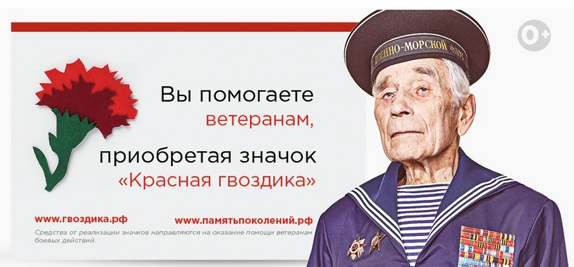 В ходе этой акции жители Российской Федерации имеют возможность приобрести символ фонда — значок «Красная гвоздика» в магазинах по всей России. Денежные средства от реализации значков поступают в фонд на оказание помощи ветеранам всех боевых действий. С подробной информацией об акции можно ознакомиться на сайте фонда по адресу: памятьпоколений.рф или https://pamyatpokoleniy.ru/