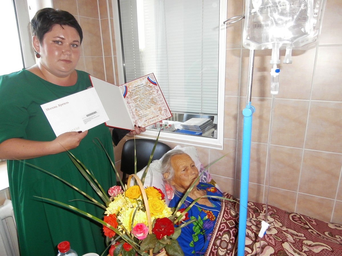 Во исполнение Указа Президента Российской Федерации от 31 мая 2012 года № Пр-1438 и в рамках реализации проекта «Старшее поколение», с этой знаменательной датой именинницу поздравила директора Государственного бюджетного учреждения Республики Крым «Центр социального обслуживания граждан пожилого возраста и инвалидов Раздольненского района» Юлия Шамрай, и с наилучшими пожеланиями здоровья и долголетия вручила персональное поздравление президента РФ Владимира Путина и поздравление главы Администрации Раздольненского района Евгения Акимова.